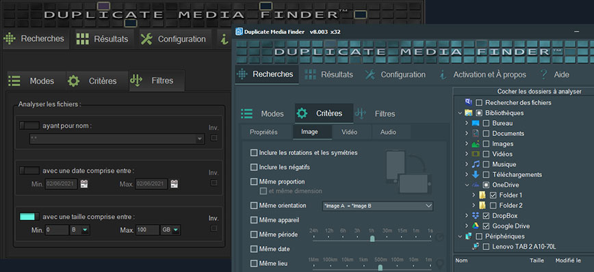 Duplicate Media Finder™ (DMF) est un logiciel complet de suppression de doublons pour Windows®. Il recherche les fichiers ou dossiers identiques mais également les documents similaires (photos, vidéos, musiques…).