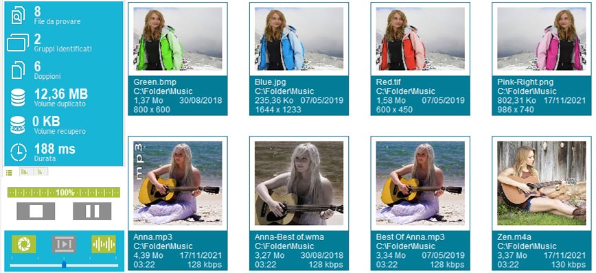 trova ed elimina i vostri files identici ed i vostri files multimediali simili