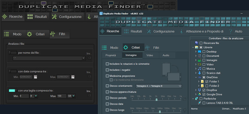 DMF posso suggerire quali saranno i doppioni da conservare in funzione dei criteri da voi definiti (dimensione, data, qualità, risoluzione, …). -